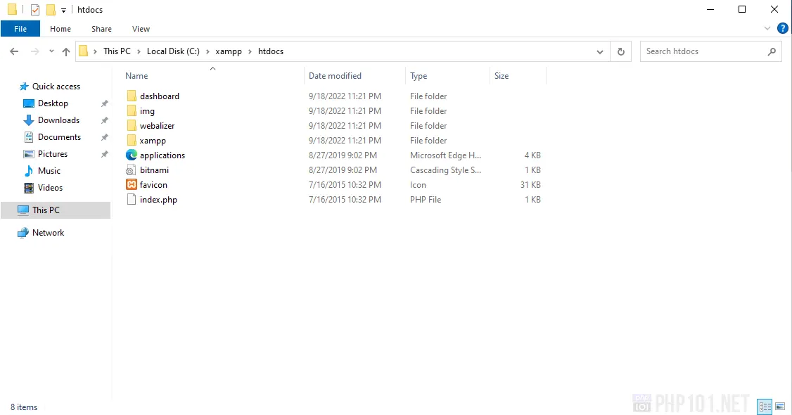 You can start your PHP development right away by editing the files in XAMPP by navigating to the folder [XAMPP installation folder]\htdocs, which contains all of the files for the webserver served by XAMPP.