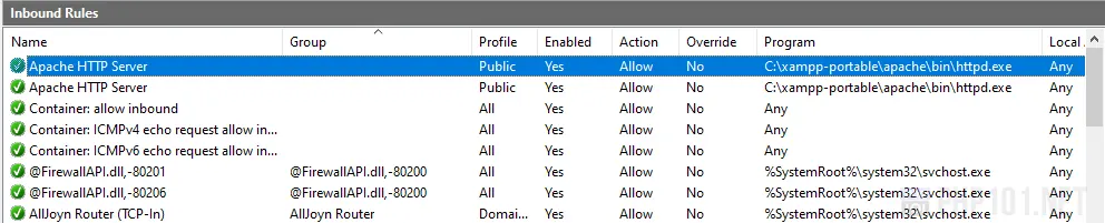 After finished, we will have the rule created. Below is the default rule created by XAMPP: