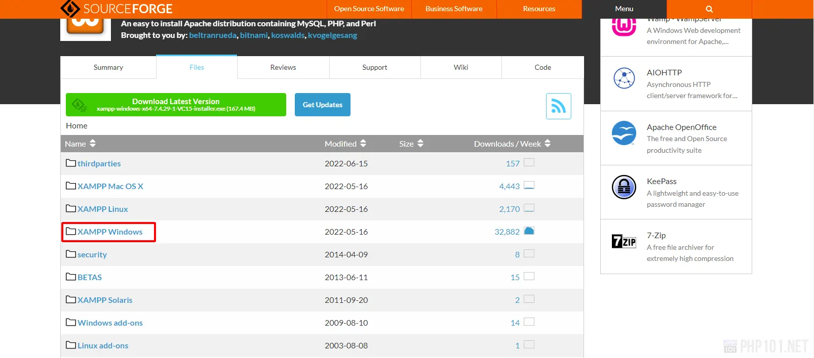 On the download page, pick a XAMPP for Windows with the PHP version you wanted. Normally, the listed versions here are the most latest, stable versions that XAMPP has them bundled. Of course, we can change the PHP version later, so this is the default recommended option.
