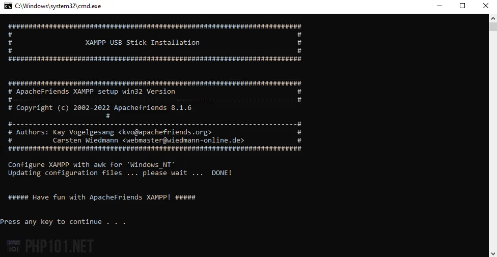 Next, run the file setup_xampp.bat and it will automatically register and configure the paths for your XAMPP portable installation.
