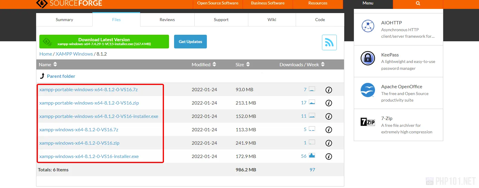 In this example, the recommended file isxampp-windows-x64-8.1.2-0-VS16-installer.exe. - For the portable version, choose the installer with
